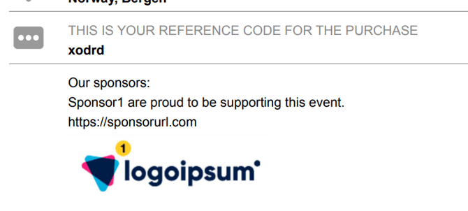 The email confirmation will show the sponsor description above the logo.