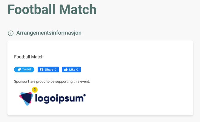 You can choose to input some extra text under Short text description, and this will display just above the logo on your event page and on the PDF ticket. To ensure that the logo and sponsor information displays on your event page, check the Published box. If unchecked, the sponsor information will only show on the customers' tickets and email confirmation.