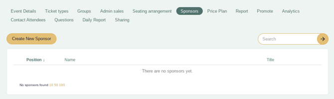 If your event is being sponsored by another organisation or company, you may want their logo and information to appear on your event page and your customers' tickets. You can easily set this up using the Sponsors tab.