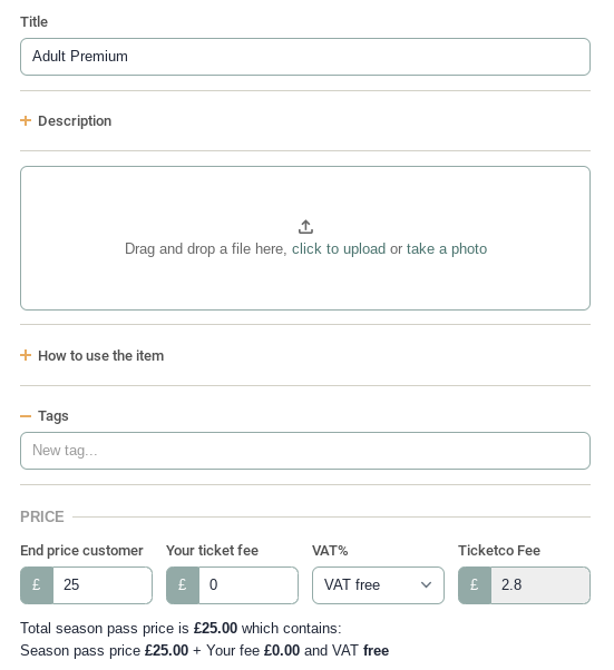 To update the price of a season ticket type, simply adjust the End price customer field and then hit Save.