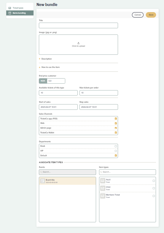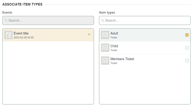 Under Associate Item Types you can now select which tickets or items you wish to include in your bundle: