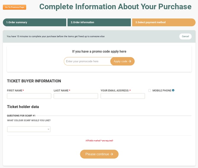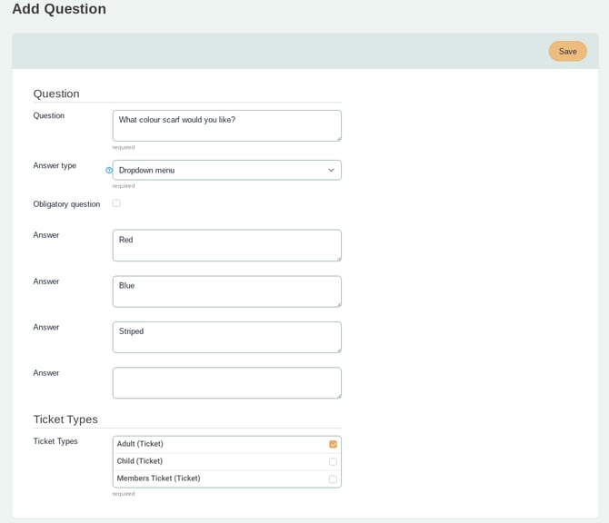 If you tick this box your question will be obligatory to answer in order to complete the purchase. This means that the shopper has to answer the question in some way before being allowed to purchase the ticket.
