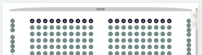 This means that customers who select the Members ticket type, will be prompted to select their ticket from the first row; and those who click on seats in the first row will get the option of purchasing the Members ticket type. You can also see that the colour of the seats has updated accordingly:
