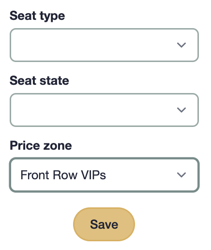 Using the menu on the right hand side of the page, select Price zones and choose the relevant zone from the list, which in this case is "Front Row VIPs". Then hit Save.