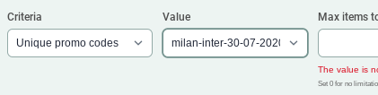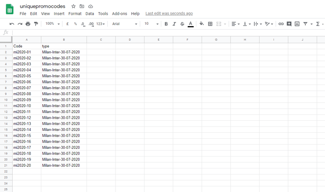 Here is an example of 20 promo codes that would be used in a football match between Milan and Inter on the 30th of July 2020:
