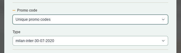 Under the +Promo code field, select Unique promo codes. Then choose the relevant Type. This is where you will see the name you inputted in the Type column on the file.