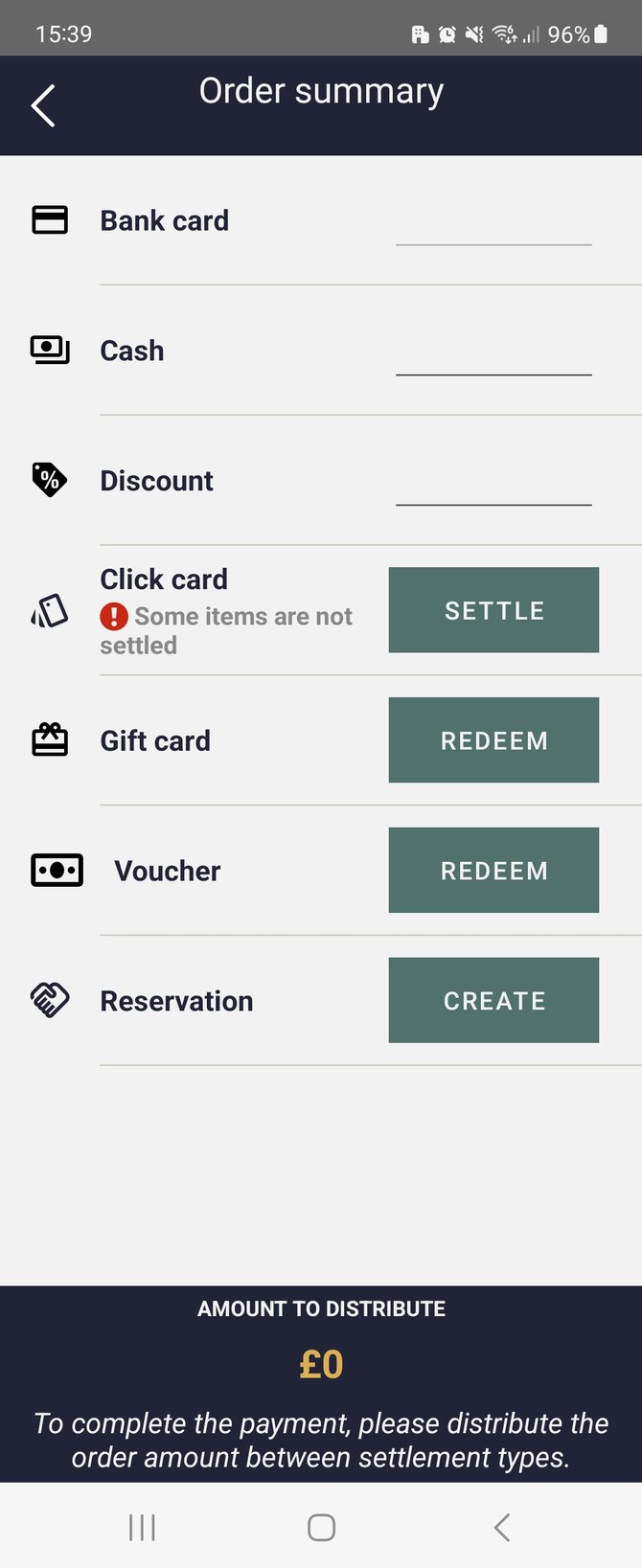 Yes! Add the relevant items (they must be click card ticket types) to the shopping cart as normal. Then select Mixed in the menu at the bottom. You will see the Click card option appear, so select the Settle button to continue: