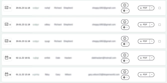 This will show you your sales per season pass type and per settlement type. You can also find a list of all the season passes purchased at the bottom of the Report page. You can filter this list according to the filter settings seen in the image above.