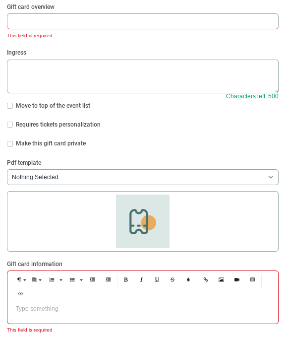 Type in a title for your gift card set under Gift Card Overview. We recommend that the title be along the lines of: "Gift card - Organiser name".