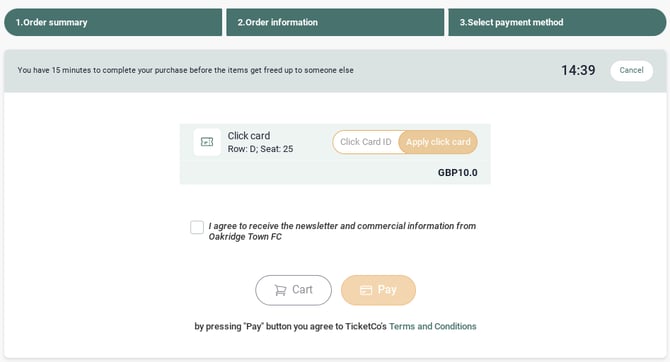 Provided that the Price of the click card and click card ticket types have been set up correctly, the customer will be able to use their click card to purchase (based on the aforementioned example) exactly 10 tickets, each worth £10.