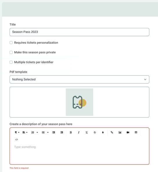Enter a title, add an image and description, and apply a date and location to your season ticket. This is very similar to creating "regular" events, where you fill out all the necessary information fields.