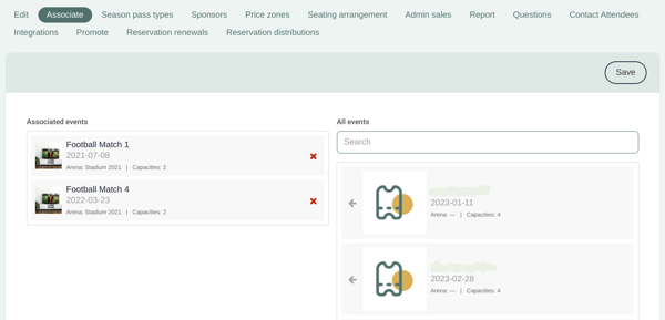 For more information about associating events with a season pass, Right this way →
