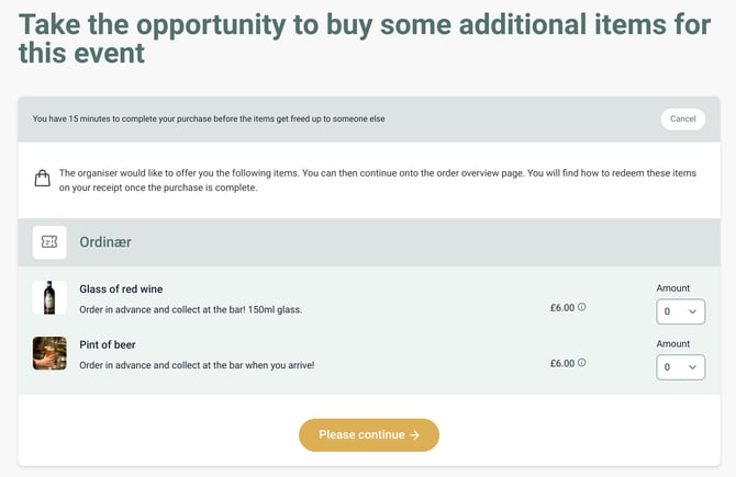Upselling items under Ticket types