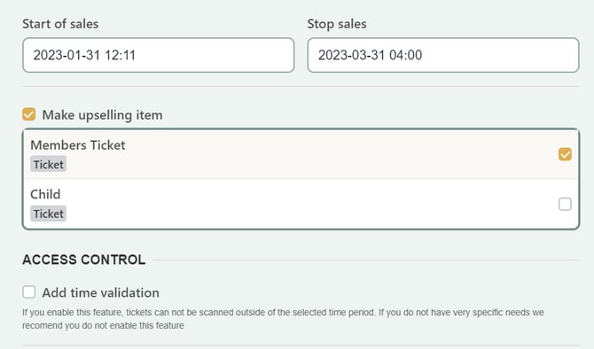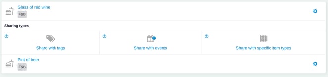 Please note that you cannot use both features on the same item (if an item is registered as an upselling item under Ticket types, it will not be visible in the Sharing tab).